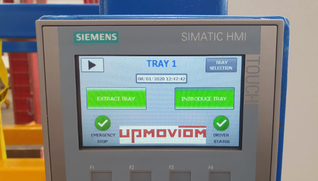 The introduction and extraction of the trays in the system can be done either manually or automatically. With the automatic system, a touchscreen is placed on the locker, allowing us to open the required level using a button to retrieve the material.